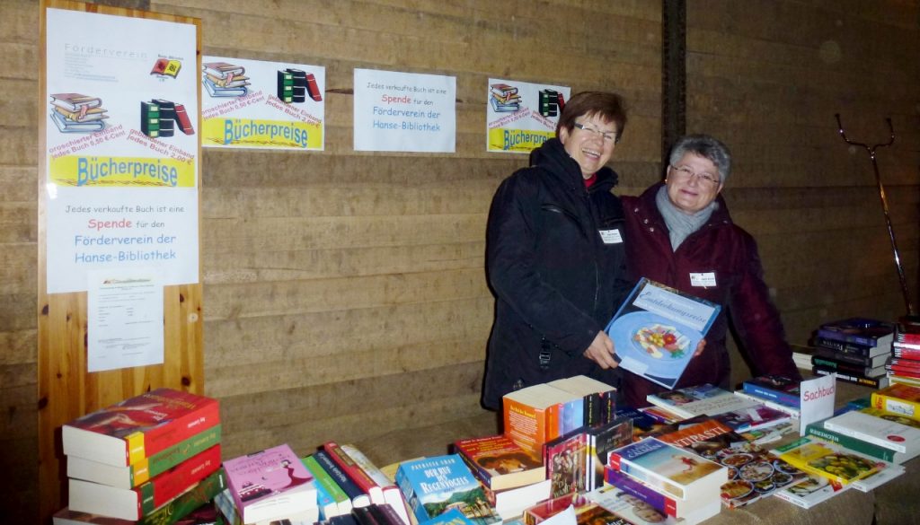Die Mitglieder des Fördervereins unterstützen die Arbeit der Hanse-Bibliothek auf vielfältige Weise. Ob sie bei verschiedensten Gelegenheiten Bücherspenden verkaufen, die Mitarbeiterinnen der Bibliothek bei der Vorbereitung und Durchführung von Ausstellungen, Aktionen und Veranstaltungen helfen, mit Kindern lesen oder basteln, zur Stelle sind, wenn ein Handwerker gebraucht wird oder den Außenbereich der Bibliothek pflegen – immer bereichern sie die Bibliotheksarbeit tragen in der Öffentlichkeit zum positiven Image unserer Bibliothek bei.